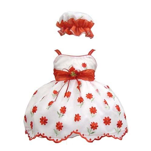 Elegant Baby Girl White Dress with Red Embroidery. Available in 12,18,24,36 Months
