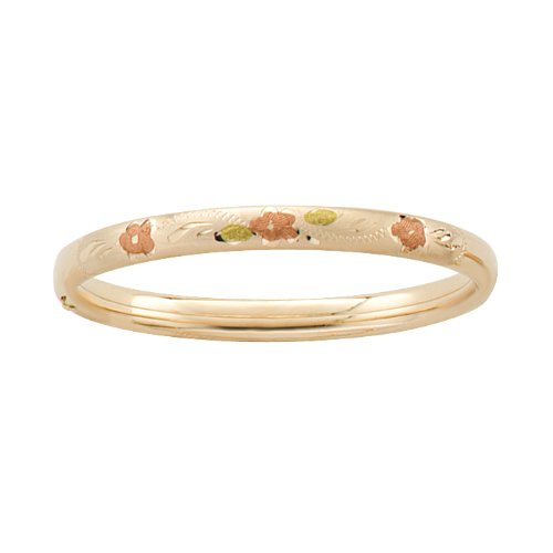 14k Gold Filled Children's Hand Engraved Tri-Color Guard and Hinge Bangle Bracelet